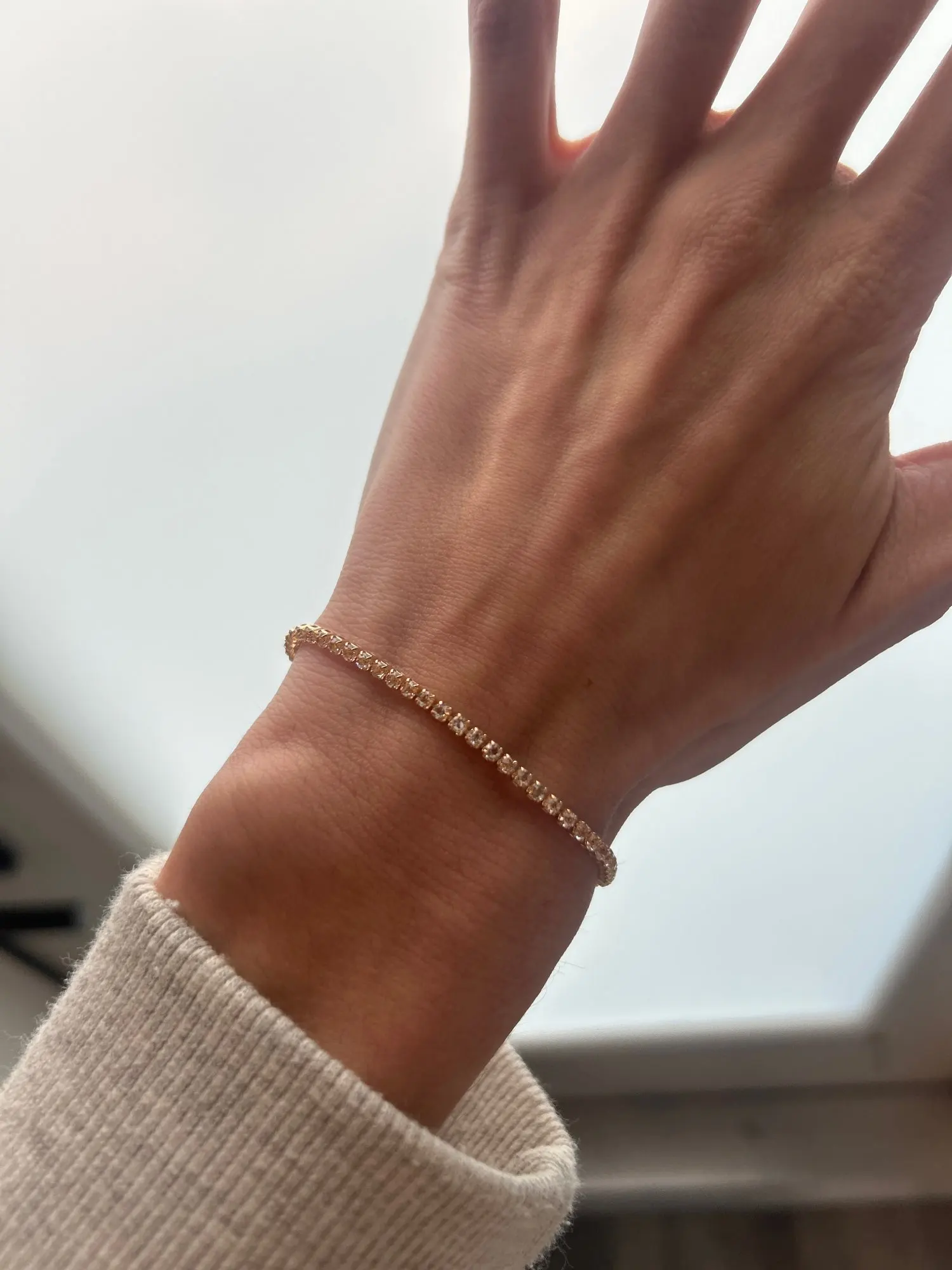 Tennis Bracelet, a timeless piece designed for effortless elegance. Crafted with durable stainless steel and luxuriously plated with 14k gold using an advanced PVD (Physical Vapor Deposition) coating, this bracelet offers both lasting beauty and exceptional shine. Perfect for stacking or wearing solo, this trendy accessory adds a touch of sophistication to any outfit, making it ideal for both everyday wear and special occasions.