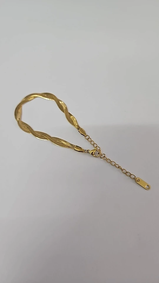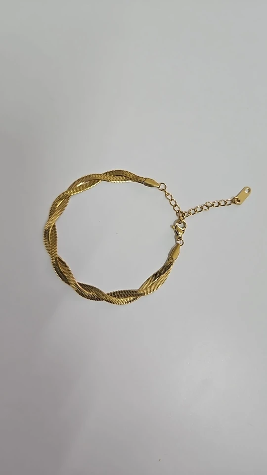 This exquisite piece features a unique twisted herringbone chain design that subtly catches the light. Its polished, reflective surface and intricate pattern create an illusion of movement, making it a captivating addition to any wrist. Perfect for standalone wear or layering, the Mirage Herringbone Bracelet offers sophisticated style that lasts. Crafted from durable stainless steel and luxuriously plated with 18k gold using advanced PVD technology.