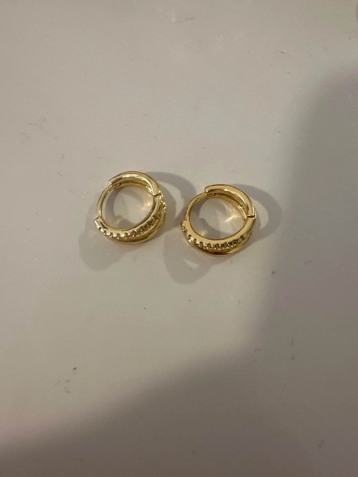 These captivating earrings feature a sophisticated double-hoop design, with one curve shimmering brilliantly with a delicate line of dazzling stones, while the other offers a sleek, polished gleam. Designed to beautifully frame your face, they provide just the right amount of sparkle and sophistication for any occasion, from daily wear to a special evening out.
