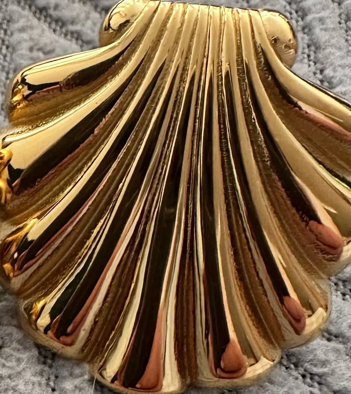 Design Details: Features an intricately ribbed texture that mimics the natural beauty of a scallop shell, enhanced by the radiant gold finish.
